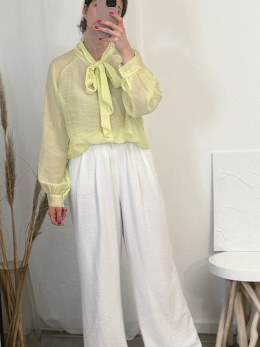 SALE | -40%Leichte Bluse mit Schleifenkragen – zartes Gelb