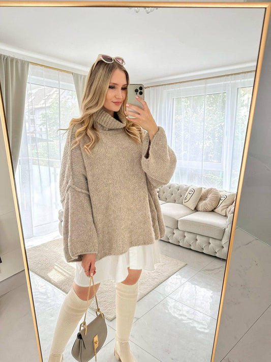 Mohair-Oversized-Strickpullover mit Rollkragen