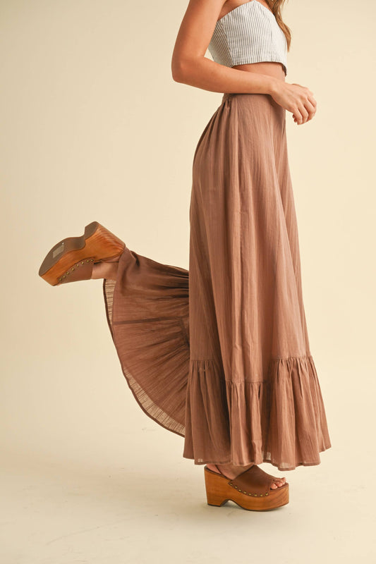 SALE | -25%Weite Hose mit Rüschen am Saum in braun