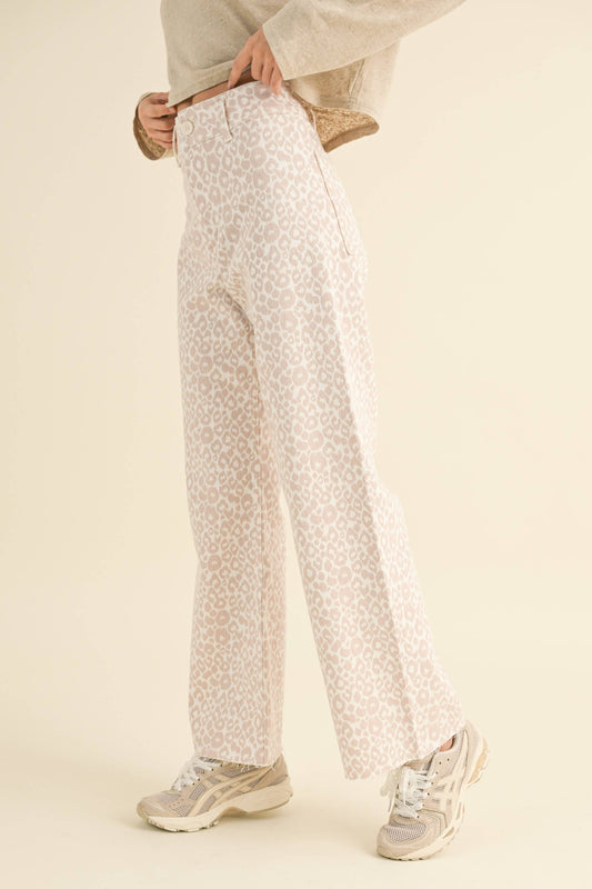 Wide-Leg-Jeans mit rosafarbenem Leoparden-Muster