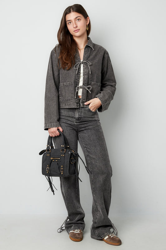 Jeansjacke mit Schleifen in Grau
