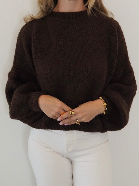 Kuscheliger Strickpullover mit Ballonärmeln – Braun