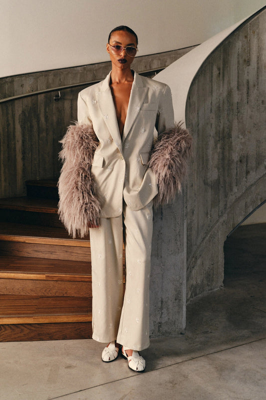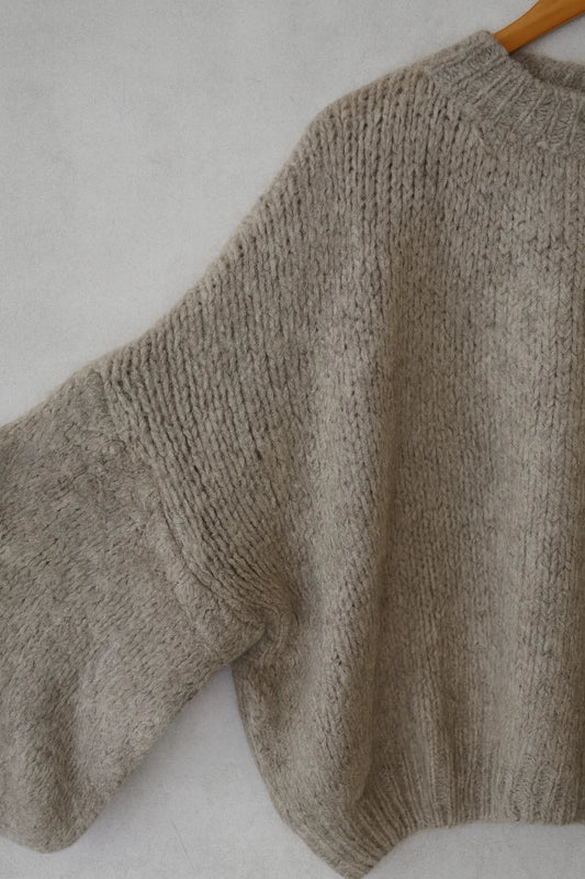 Trendiger, kuscheliger Pullover mit Puffärmeln aus Mohairmix – Beige