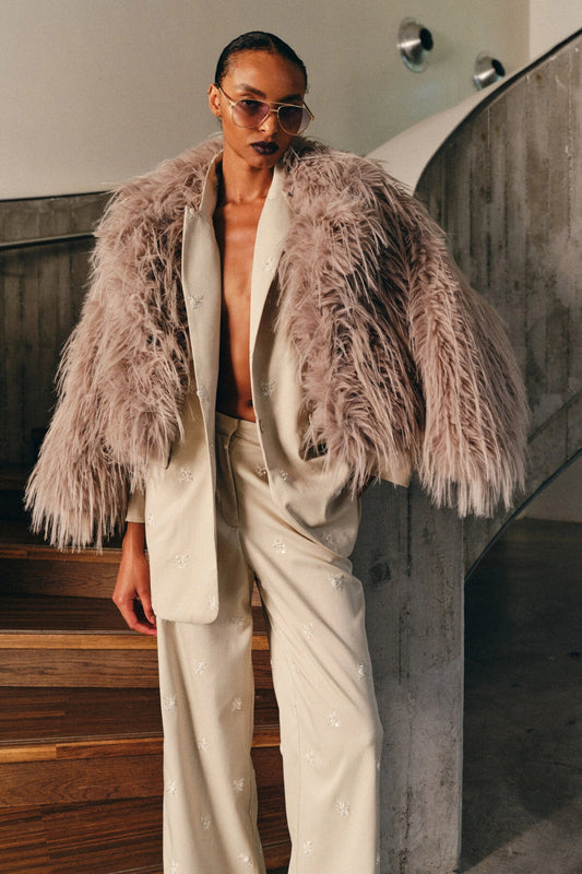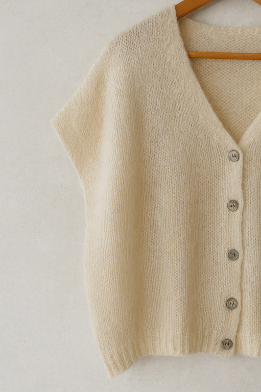 Ärmelloser Cardigan aus Mohair-Mix – Beige