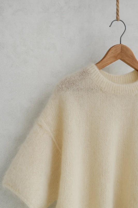 Kurzärmeliger Pullover in Creme aus 80% Mohair