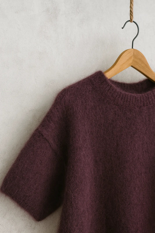 Leider ausverkauft...Kurzärmeliger Pullover in Dunkelbraun aus 80% Mohair