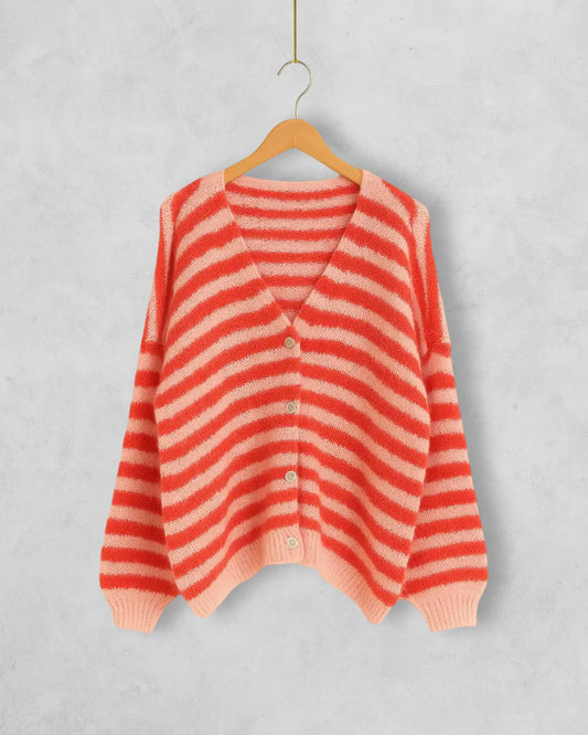 Oversized Mohair-Cardigan mit V-Ausschnitt – Braun