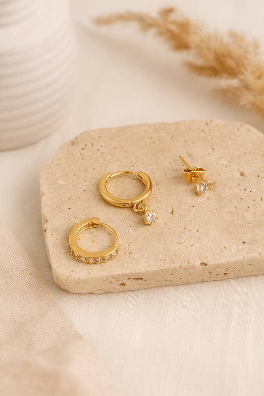 Feines Ohrring-Set in Gold mit Kristall-Details – Modern Chic