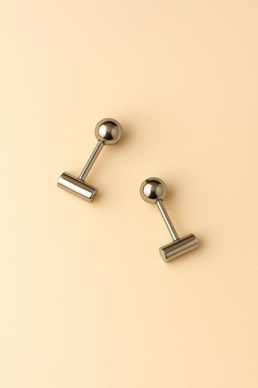 Süße Ohrstecker mit Kugel und Zylinder - beidseitig tragbar