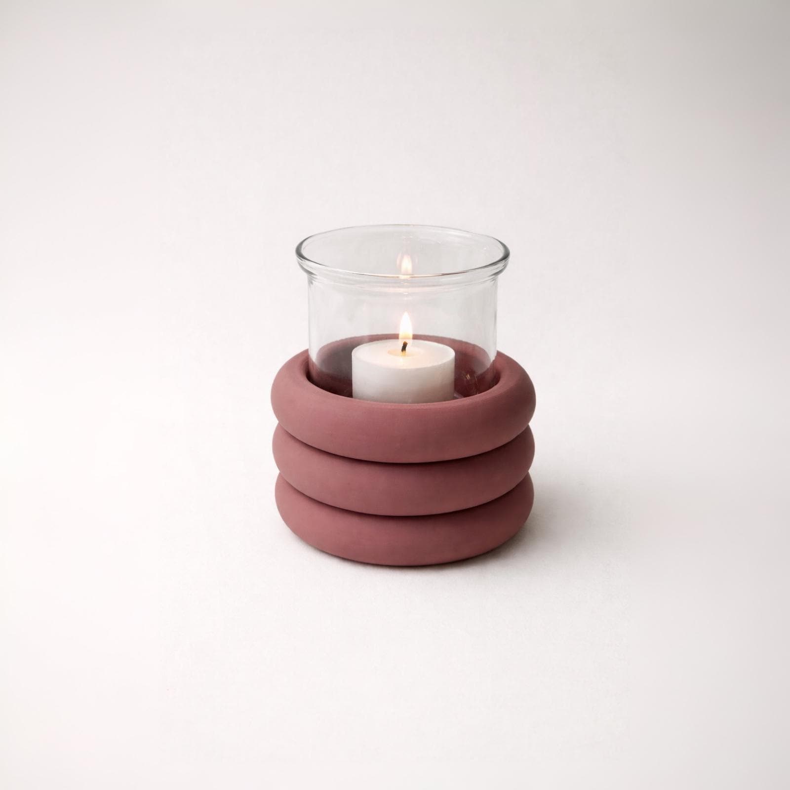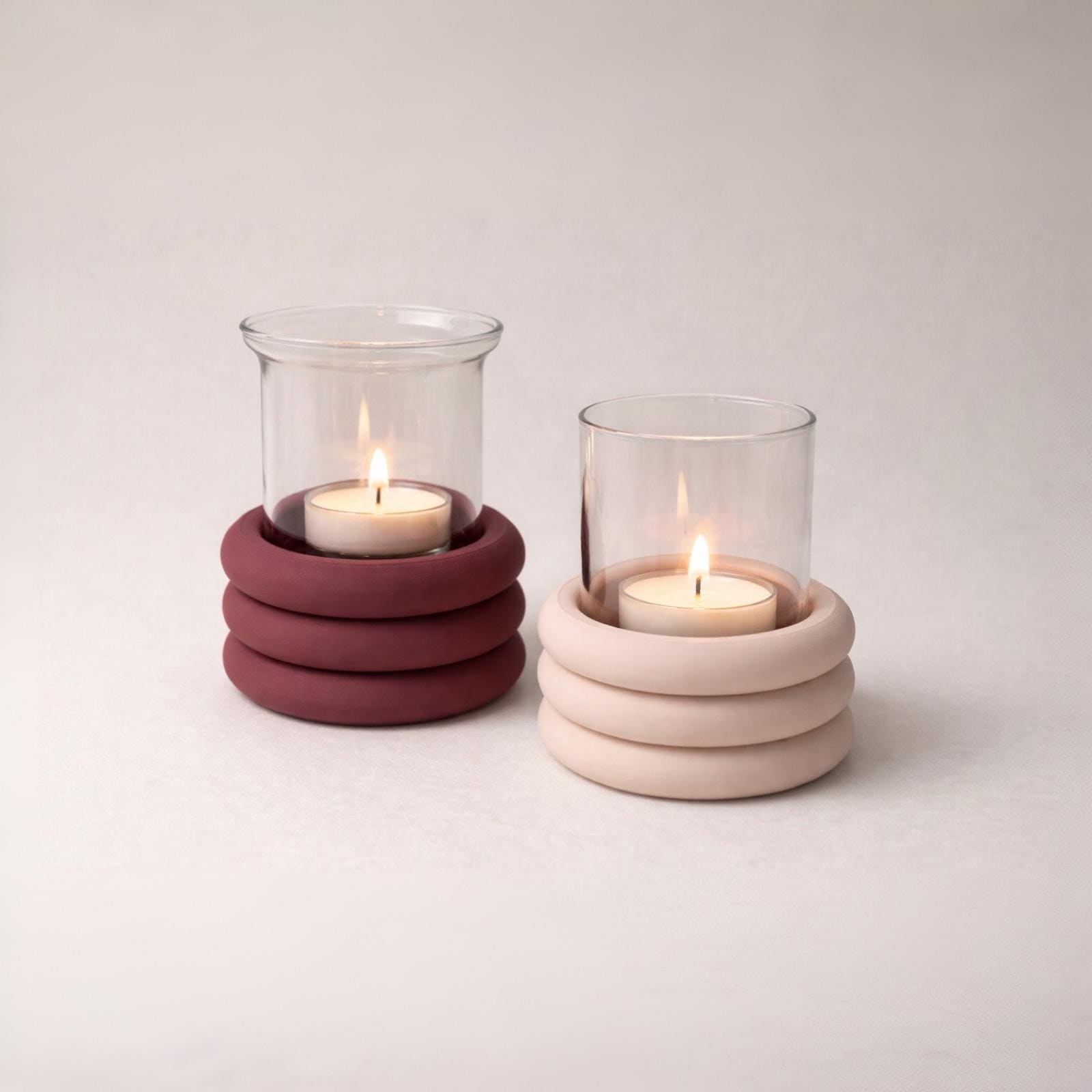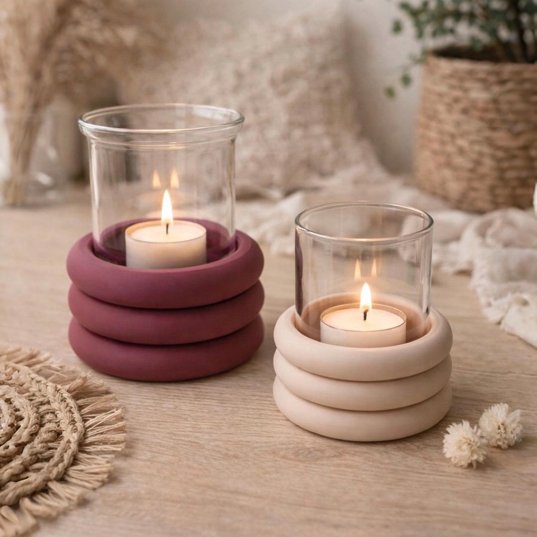 Die schlanken Ringe bilden eine elegante, zeitgemäße Basis, die auch ohne Kerze schon dekorativ wirkt. Du entscheidest Farbe, Größe und ob ein Glas dabei sein soll.