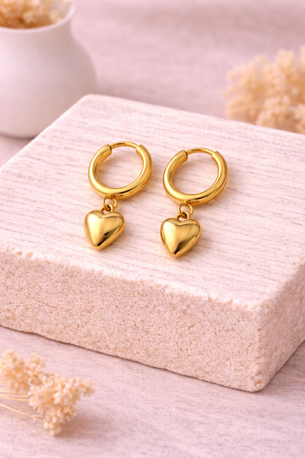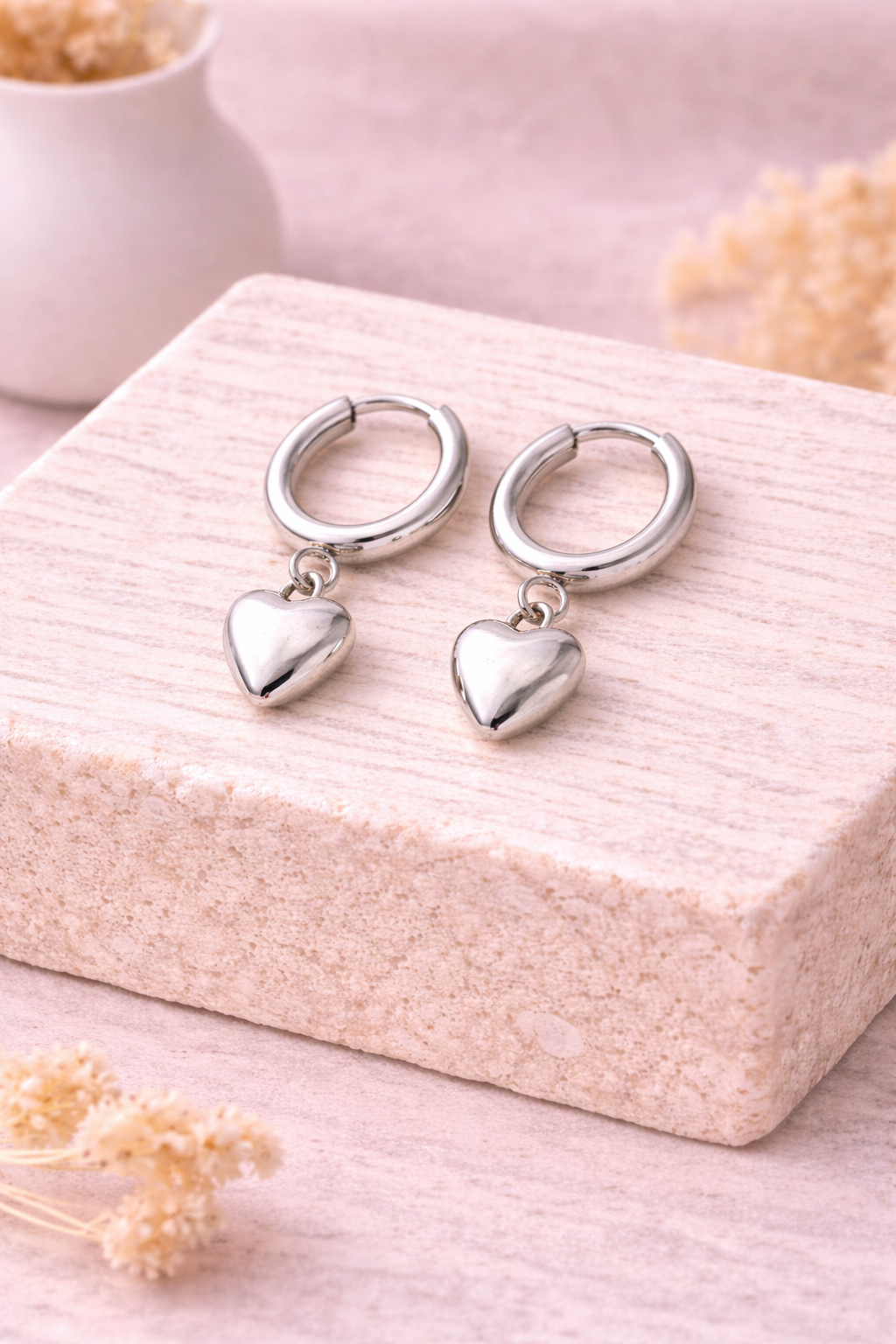 Der kleine, frei bewegliche Herzanhänger verleiht dem Look eine feminine Note, ohne aufdringlich zu wirken. Die klassische Creolenform sorgt gleichzeitig für zeitlose Eleganz und hohen Tragekomfort.