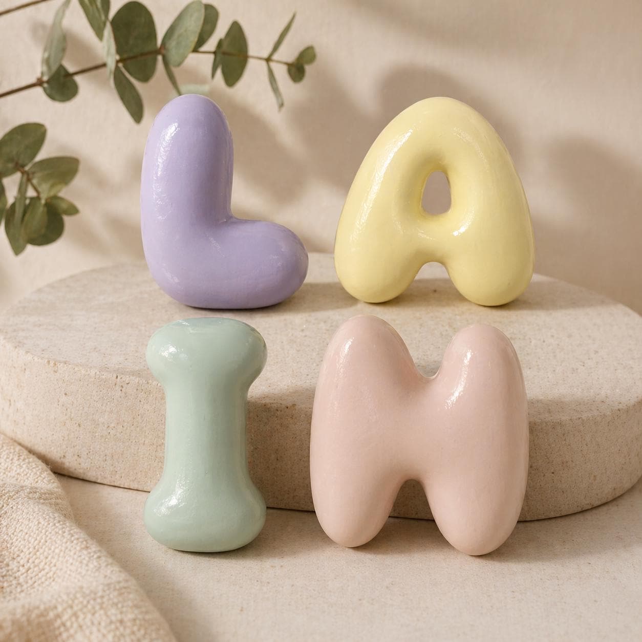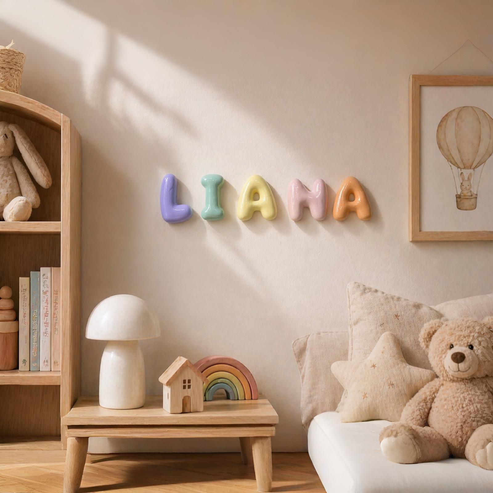 Unsere 3D-gedruckten Keramikbuchstaben vereinen den edlen Look von Keramik mit der Leichtigkeit moderner Materialien – perfekt für individuelle Namensdeko im Kinderzimmer.