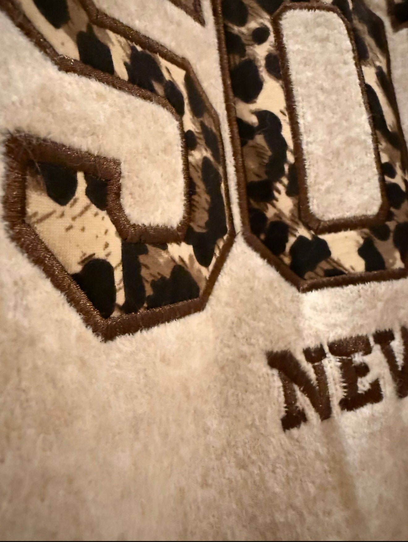 Kuscheliger Strickpullover mit SOHO Aufdruck und Leo-Print