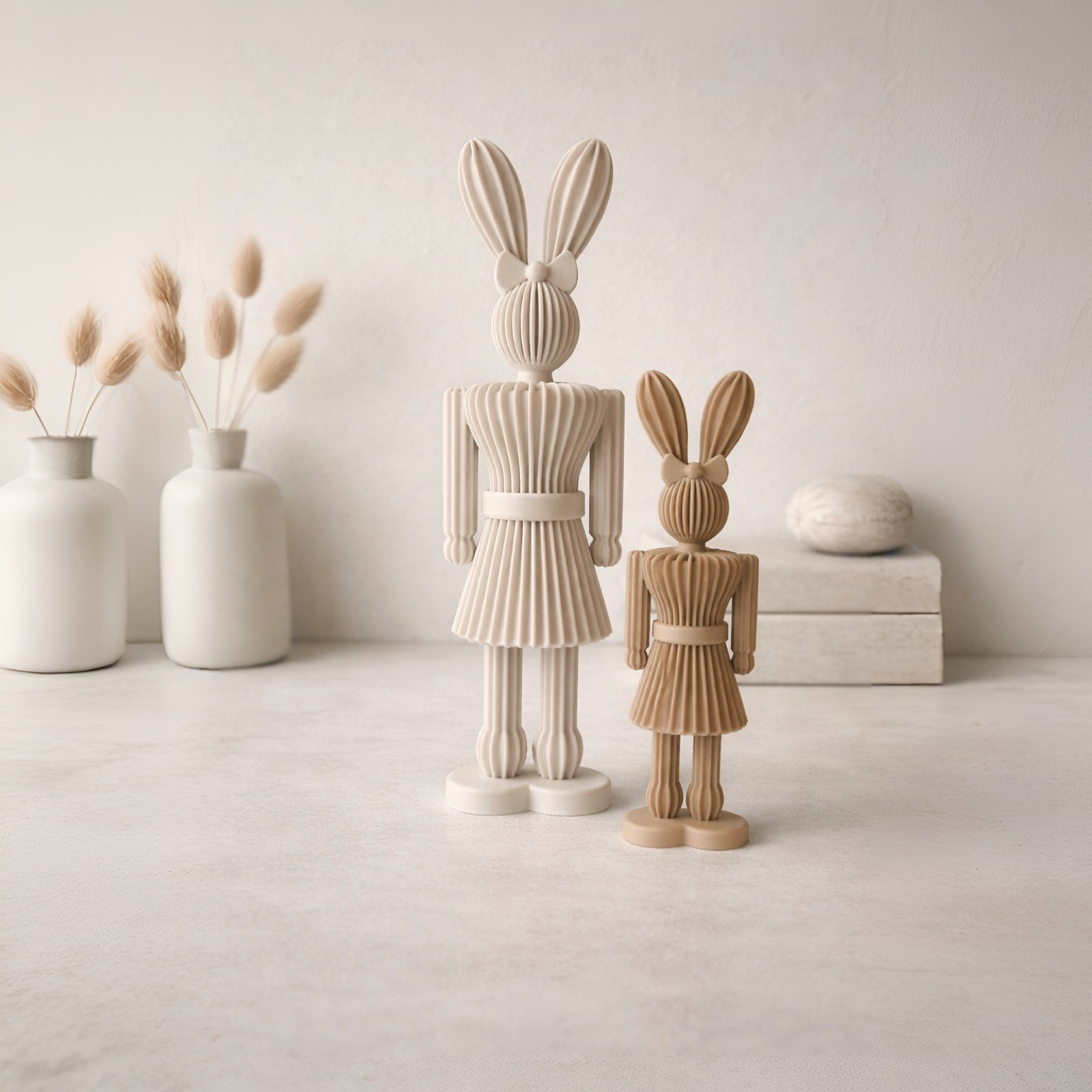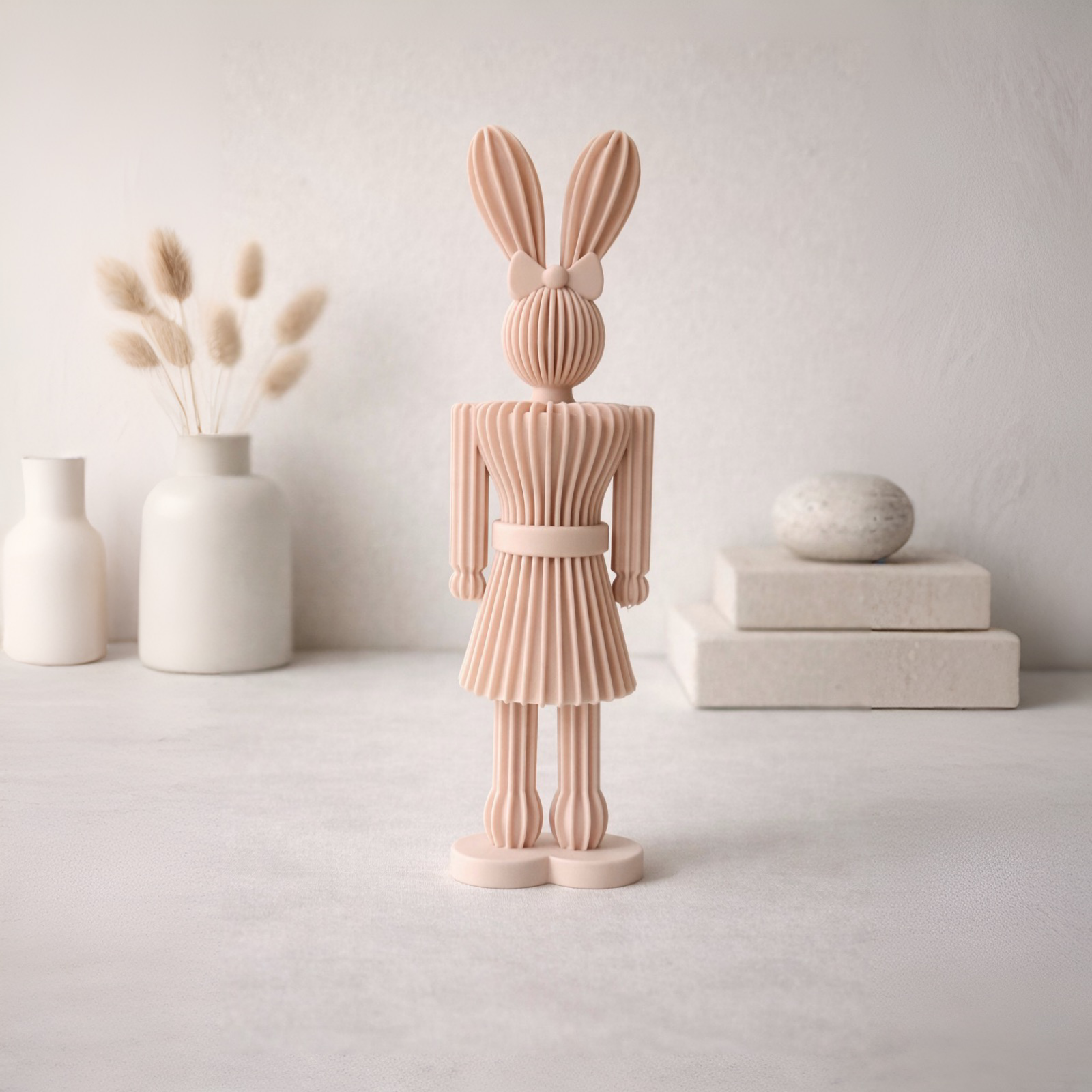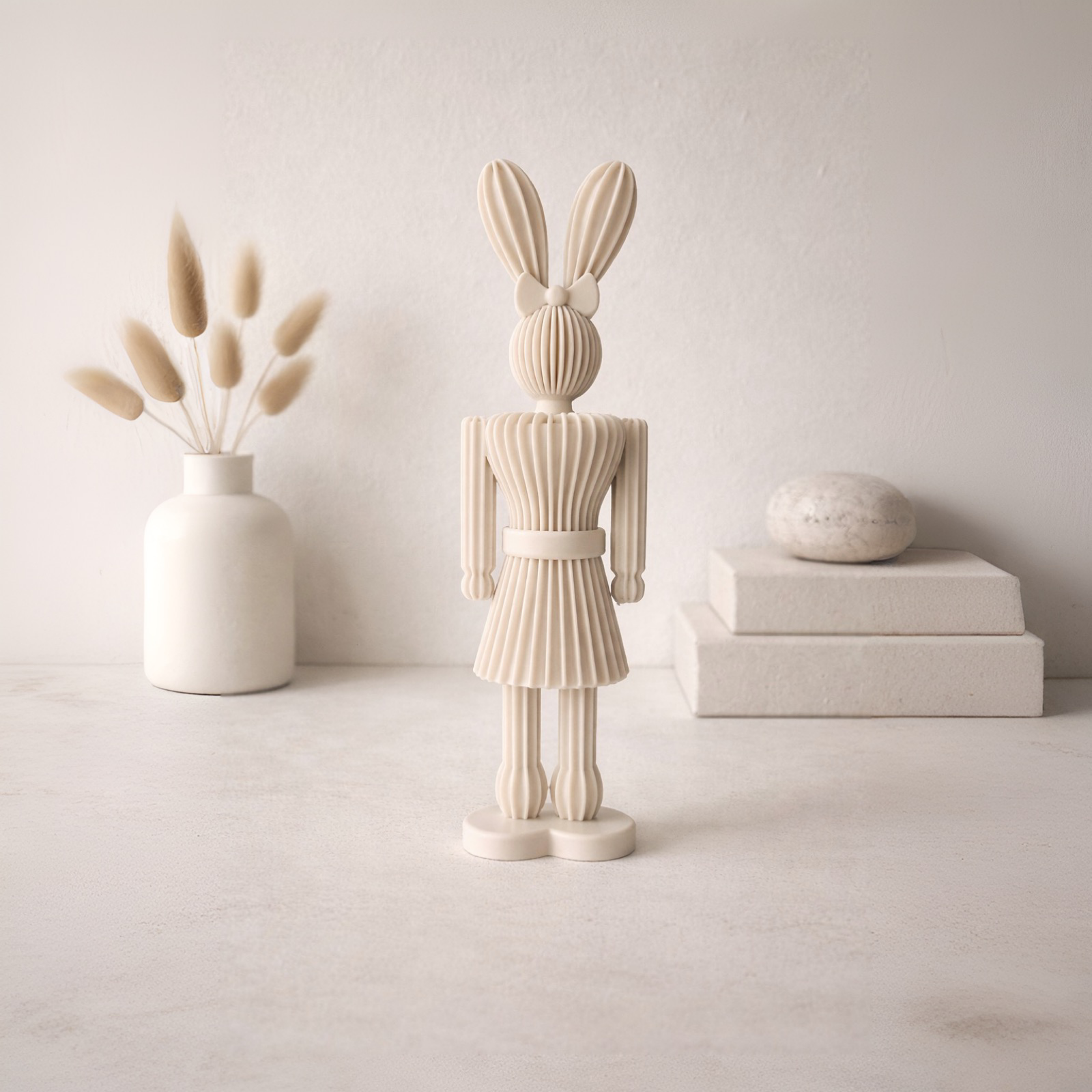 Lady Mümmel ist ein ganz besonderes Deko-Häschen im modernen Nussknacker-Stil. Mit ihrem plissierten Kleid, der kleinen Schleife und der Herz-Standfläche ist sie ein echter Hingucker – schlicht, verspielt und zeitlos zugleich.