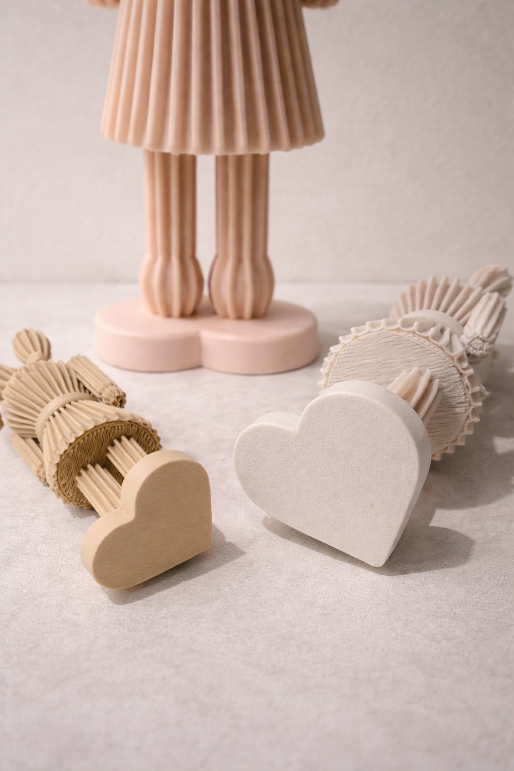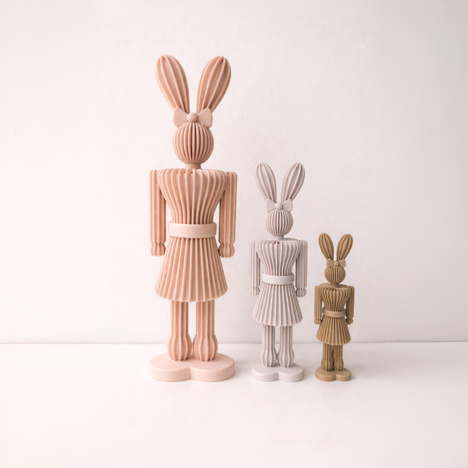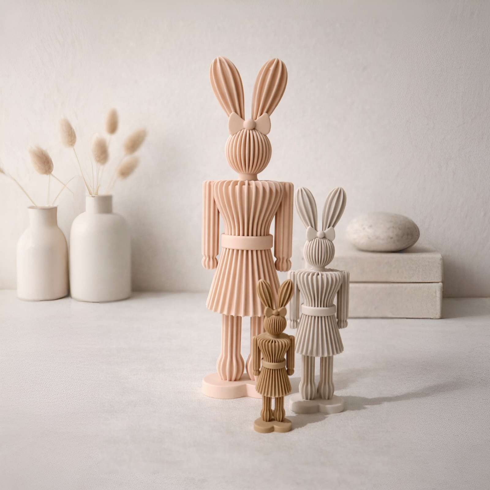 Lady Mümmel ist ein ganz besonderes Deko-Häschen im modernen Nussknacker-Stil. Mit ihrem plissierten Kleid, der kleinen Schleife und der Herz-Standfläche ist sie ein echter Hingucker – schlicht, verspielt und zeitlos zugleich.