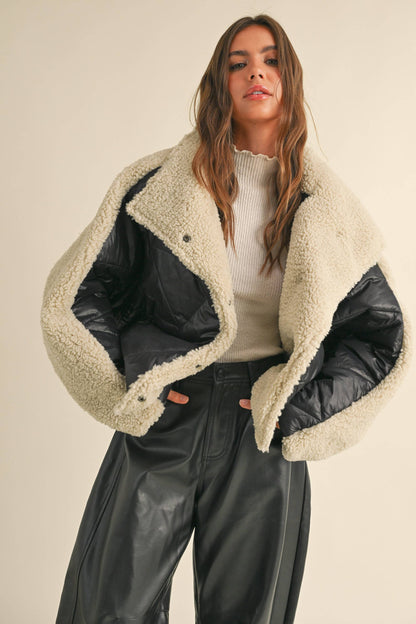 Oversize-Trendjacke mit Lammfellkontrast