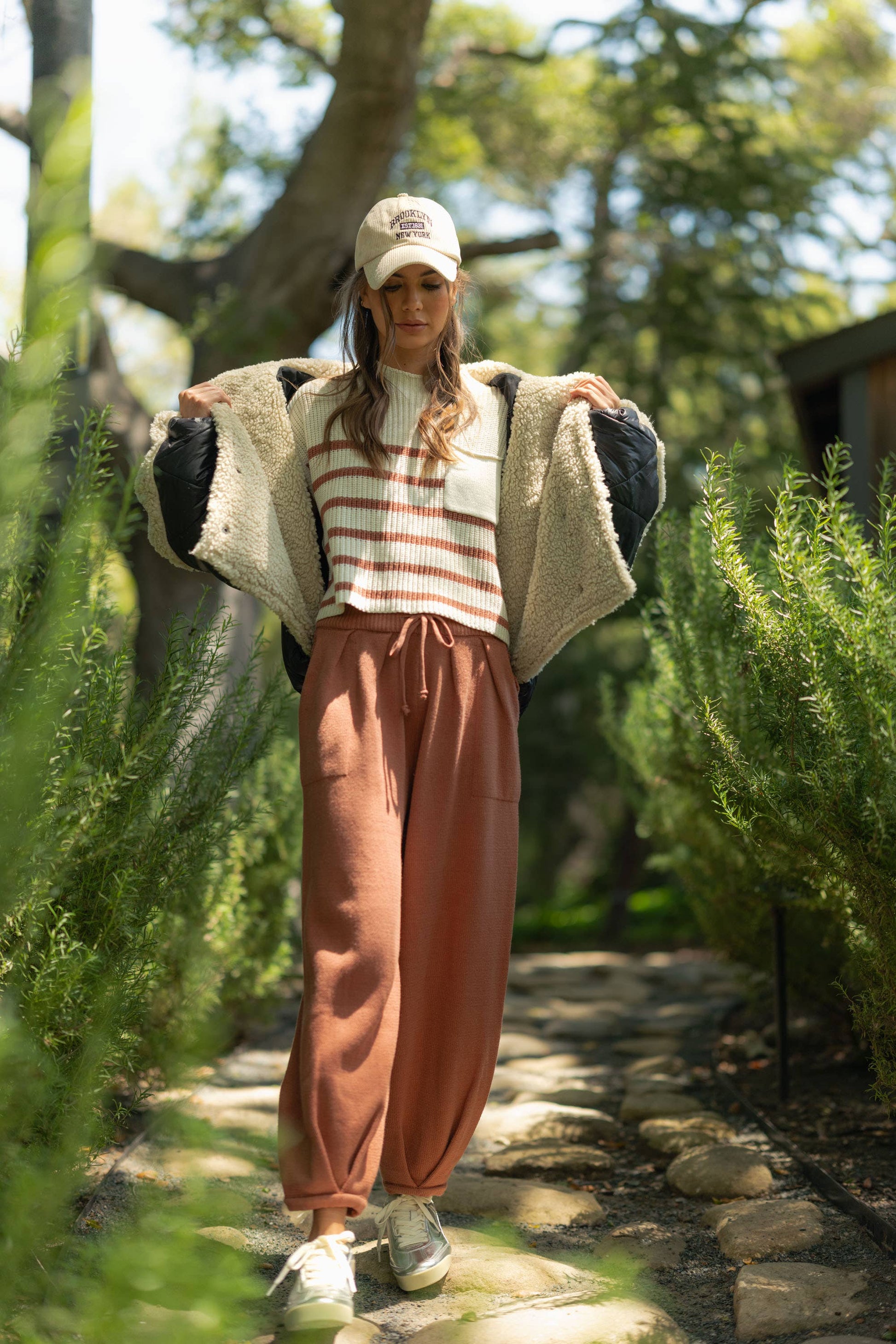 STEPPJACKE MIT LAMMFELLKONTRAST * * Größe und Passform * * * * * * * * * * * * * * * Das Model trägt Größe S Maße ab Größe S Höhe: 5' 7 1/2"/175,3 CM 33 (Büste) — 24 (Taille) — 34 (Hüfte)