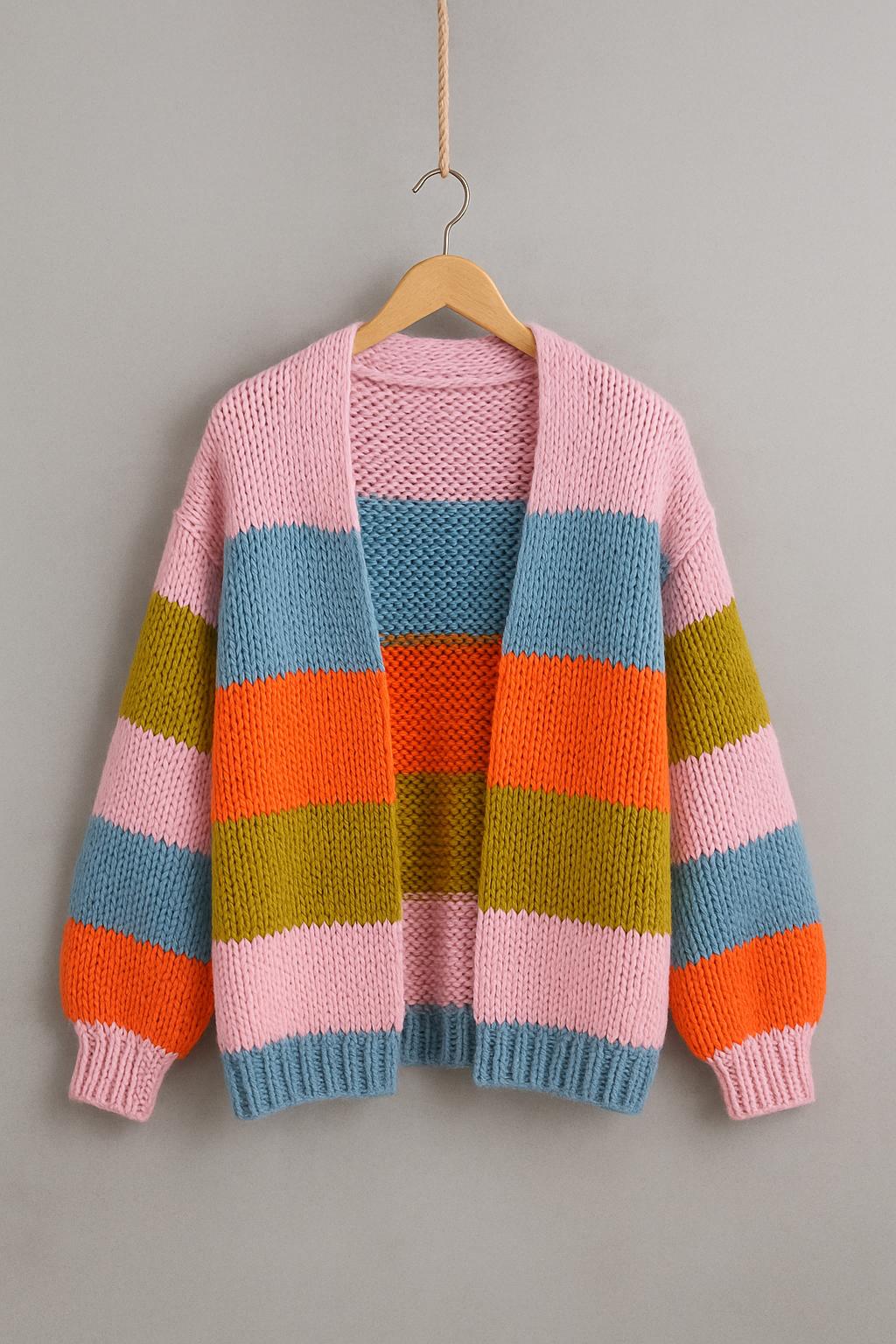 Klassischer Herbststil Strick-Cardigan-Pullover für die kühlen Morgen und Abende. Entspannter, gemütlicher Schnitt Modell trägt S/M