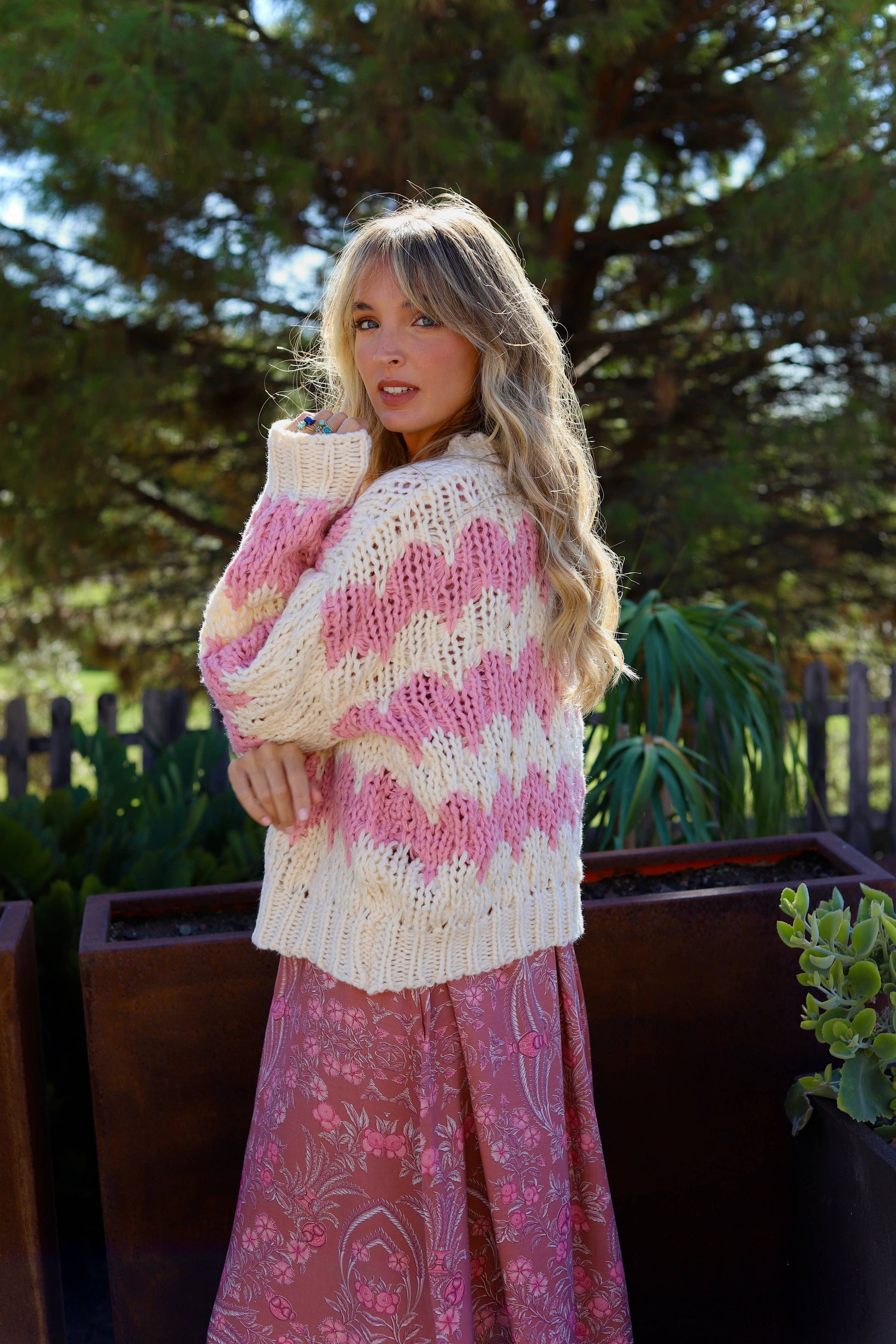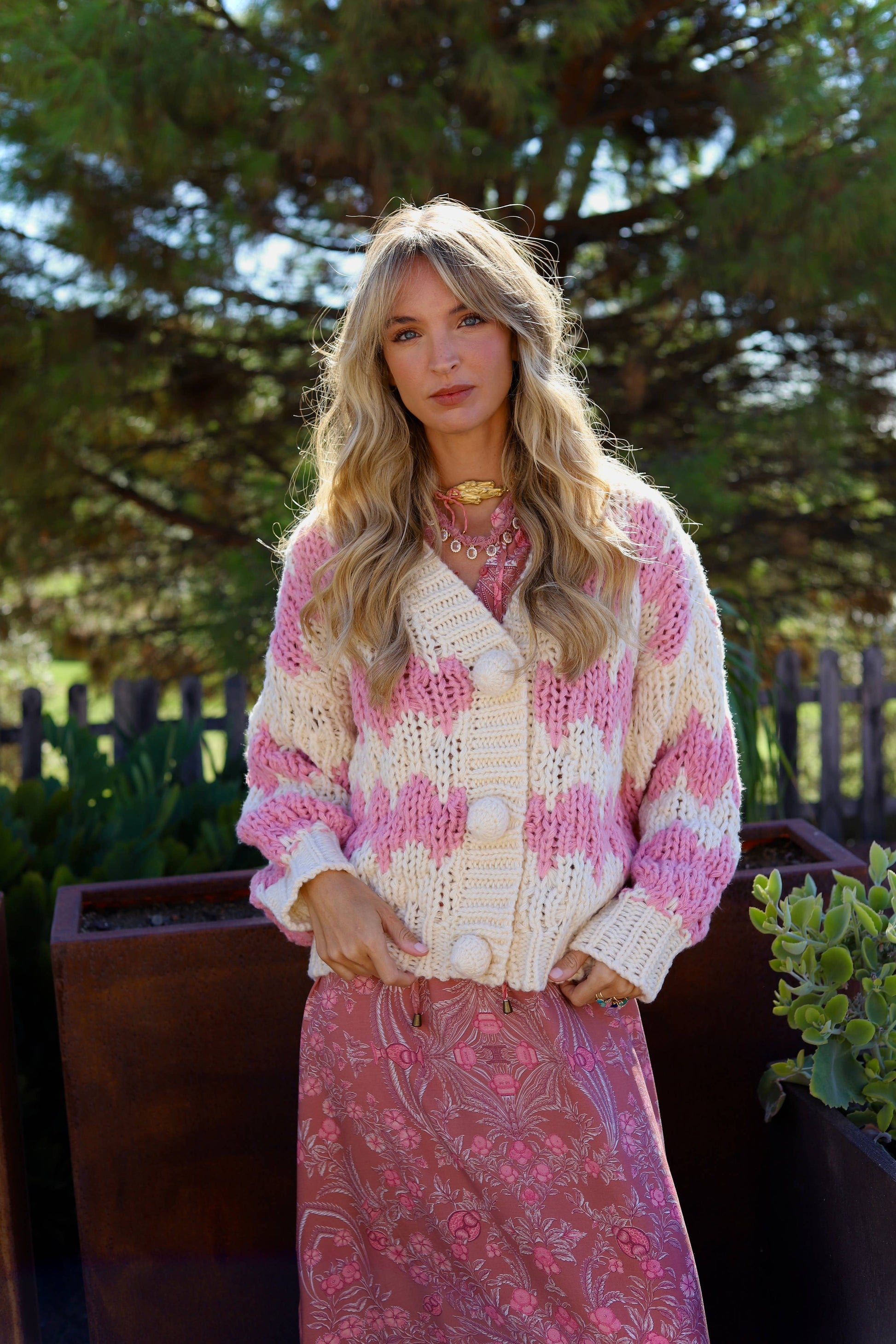Klassischer Herbststil Strick-Cardigan-Pullover für die kühlen Morgen und Abende. Knopfleiste Entspannter, gemütlicher Schnitt Modell trägt S/M